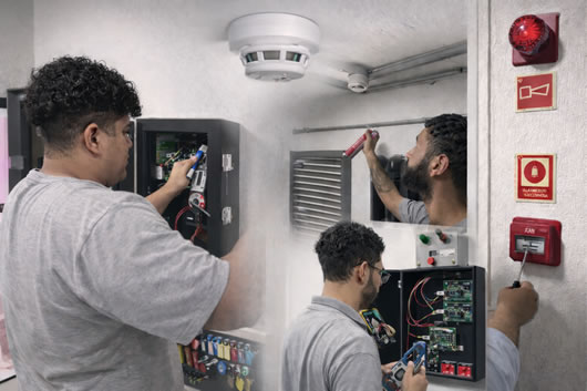 contínuo do seu sistema de alarme de incêndio. Esse plano garante que todos os componentes do sistema
